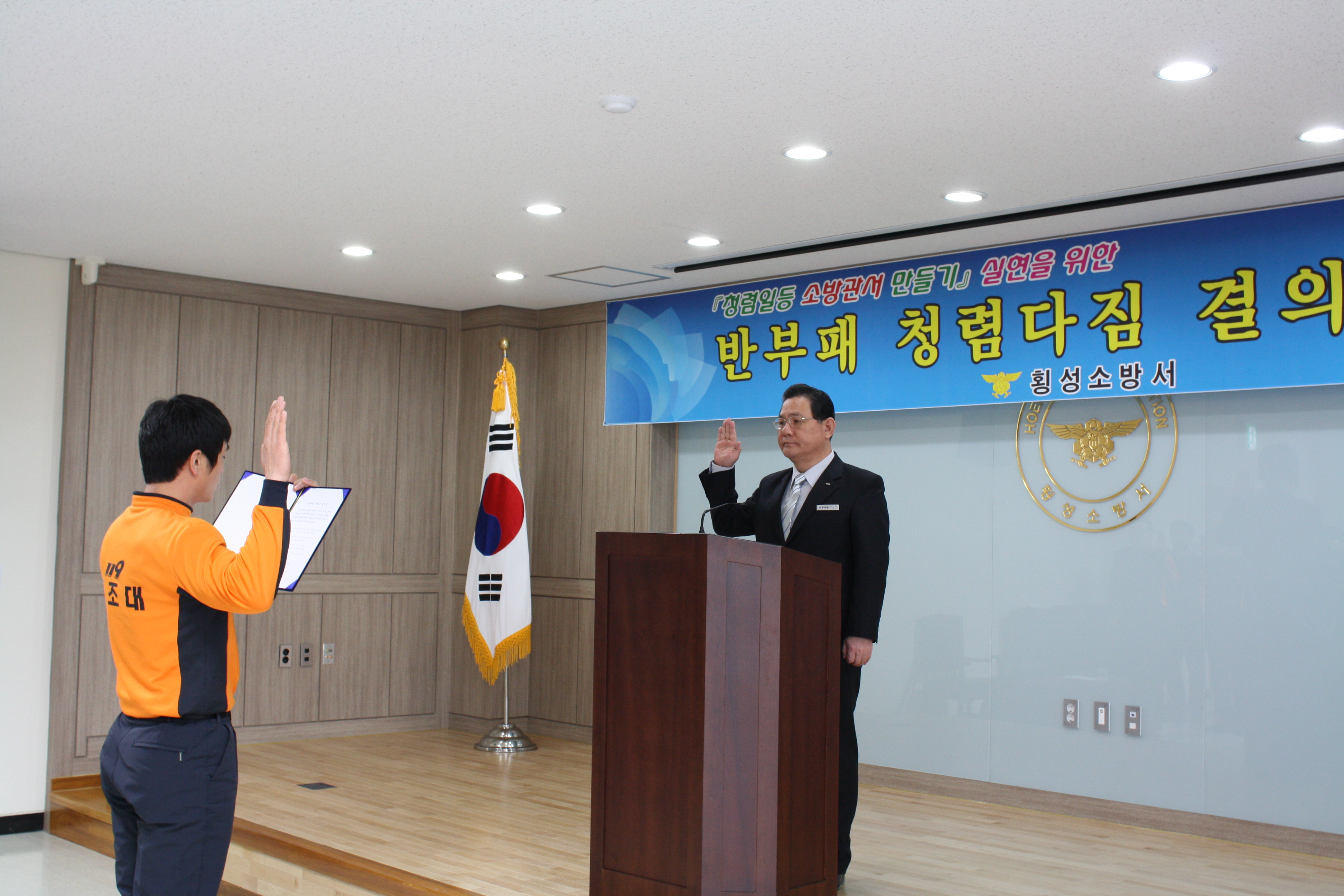 횡성소방서(서장 : 조근희)는 2월의 마지막 날에 공무원의 기본이 되는 청렴한 마음가짐을 새기며 결의대회를 실시했다.