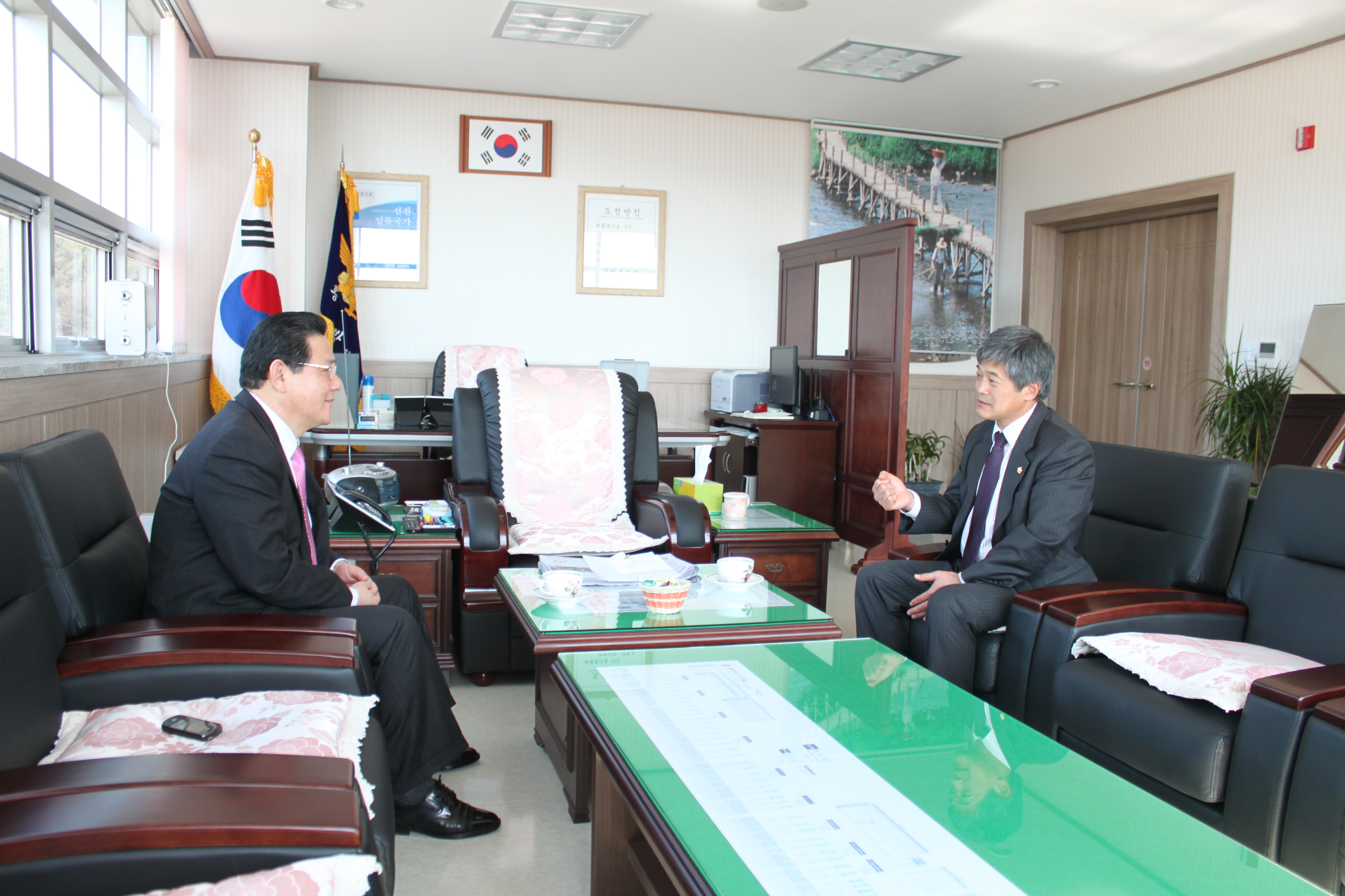 횡성소방서(서장 조근희)에 횡성군의회 정명철 의장님께서 방문하시어 구제역 관련 지원활동 및 겨울철에 이어 봄철 화재예방대책 추진활동 등 군민을 위한 소방활동에 감사의 표시와 함께 격려 하셨다.