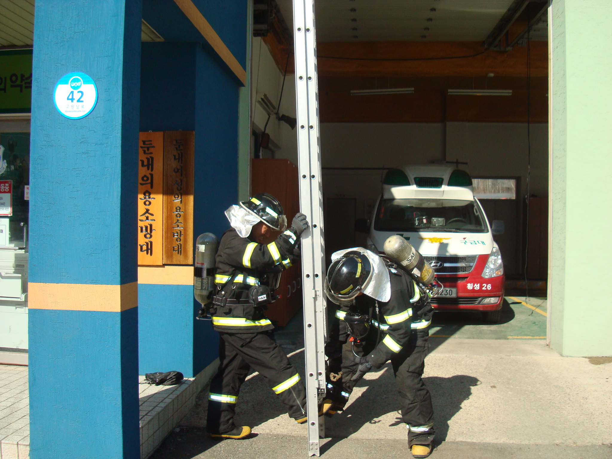횡성소방서(서장 조근희) 둔내119안전센터에서는 2011년 8월 29일(월) 복식사다리 조작훈련을 실시하였습니다. 반복적인 장비조작 숙달훈련을 통해 불시의 사고에도 대처할 수 있는 든든한 지킴이가 되겠습니다.