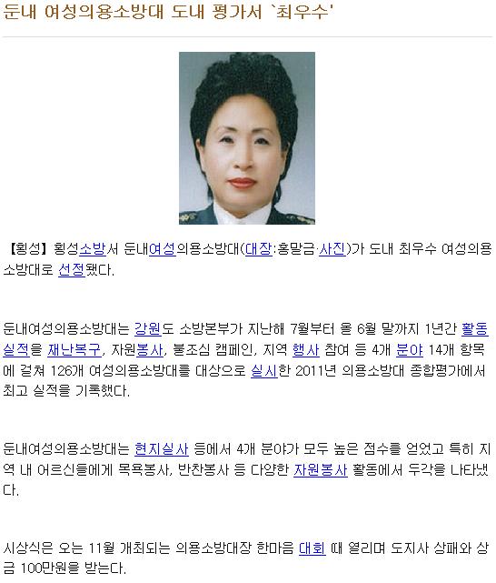 둔내여성의용소방대가 강원도 의용소방대 종합평가에서 당당히 1위를 차지했습니다.