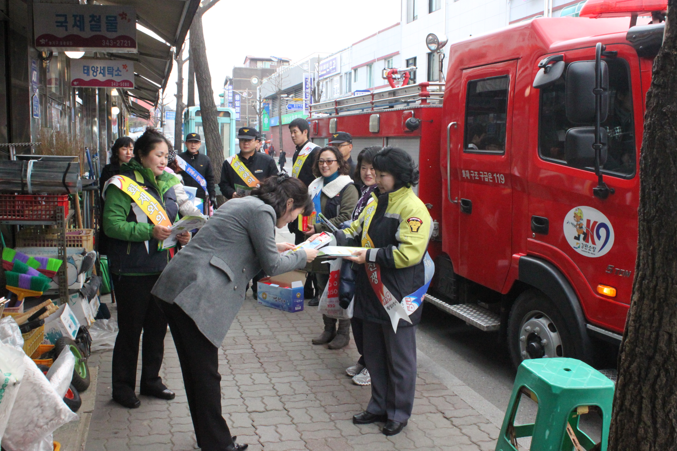횡성소방서(서장 조근희)는 지난 8일 횡성시장에서 겨울철 안전사고 및 화재예방을 위한 유관기관 합동 캠페인을 실시했다. 이번 캠페인은 소방, 군청, 타 공공기관 등 직원들이 참여하여 재래시장 상인들에게 화재예방 홍보 및 비상구 안전관리 요령 등을 교육하였으며, 또한 소방통로 확보 훈련도 병행 실시하여 상인들의 안전의식을 고취시켰다.