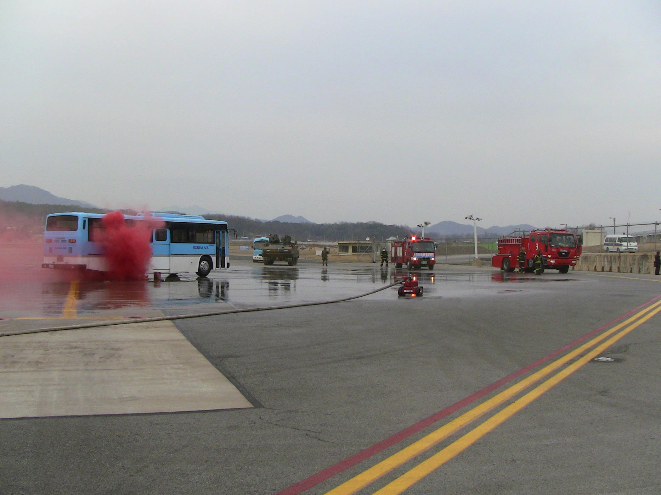 횡성소방서(서장 조근희)에서는 2월 28일 14:30 공군제8전투비행단 민항기계류장에서 대테러 대비 관·군 합동훈련을 실시하였습니다. 금일 훈련에 새로 들어온 무인방수로봇을 사용하여 대테러 시 적극활용할 수 있는 방안을 강구하였습니다.