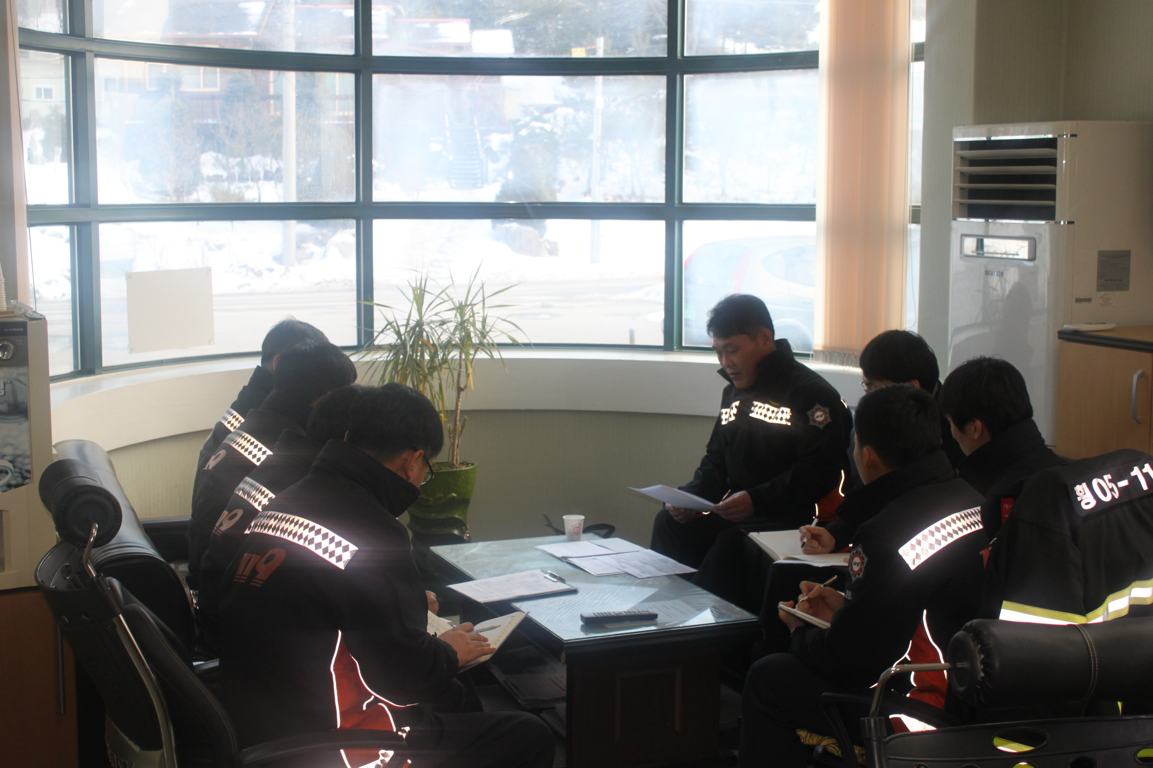 금번 순회교육에서는 각 종 출동시 안전벨트 착용 방안에 대해서 논의하고 개인안전장비 착용을 직원 상호간 확인할 것을 당부하였습니다.