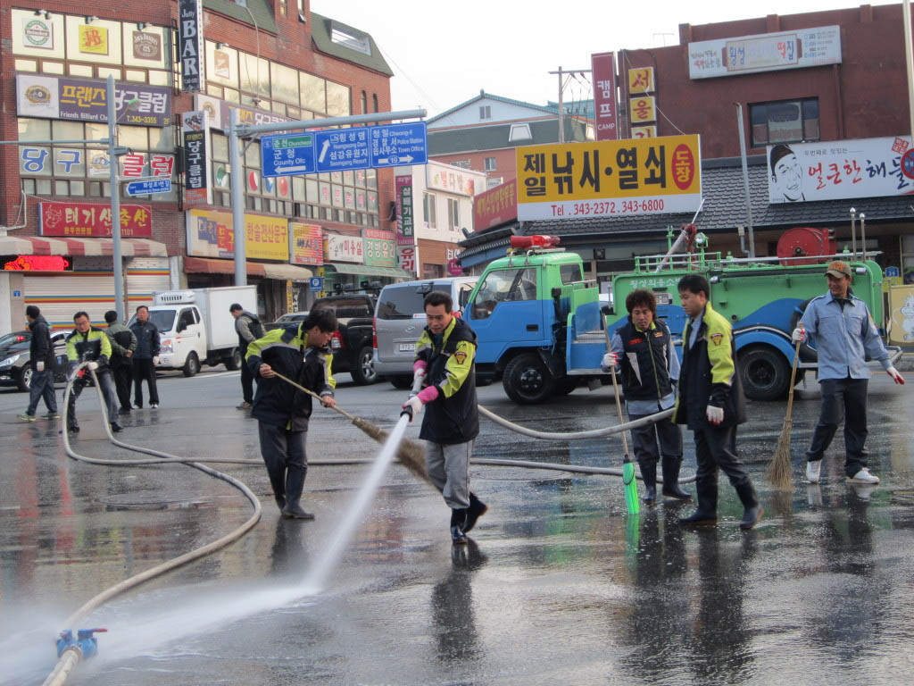 이번 시가지 정화활동에는 횡성군청 및 횡성로터리, 시계탑 등 군민들의 왕래가 많은 중심가를 대상으로 횡성의용소방대에서 자체 보유한 펌프차를 활용하여 물청소를 실시하고 쓰레기 수거활동을 펼쳤습니다.