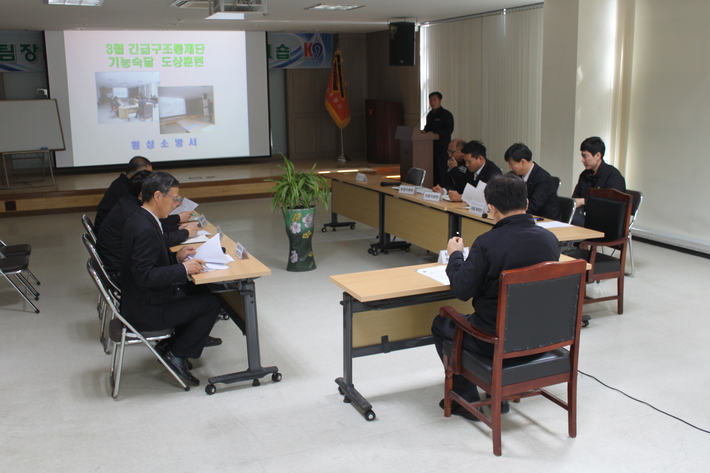 횡성소방서(서장 이병은) 3월 24일(월) 14시부터 대회의실에서 직원 20여명이 참석한 가운데 3월 기능숙달훈련을 실시했다. 3월 기능숙달훈련은 횡성문화체육공원 내 국민체육센터에서 원인 미상의 건물 붕괴로 인하여 다수의 사상자 및 재산피해 발생하였다는 훈련 이벤트를 통하여 긴급구조통제단 가동 시 각 기능별 임무 숙지 등 현장대응능력 제고를 위한 도상훈련을 시행하였다.