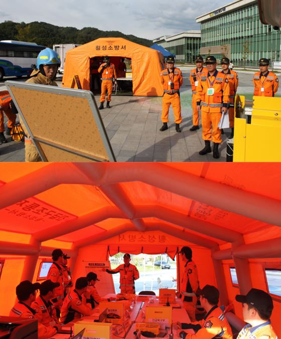 횡성소방서(서장 유중근)는 4일 횡성청소년수련관을 대상으로 불시 긴급구조통제단 가동훈련을 실시하여 대형재난 대비에 만전을 기하였습니다..
