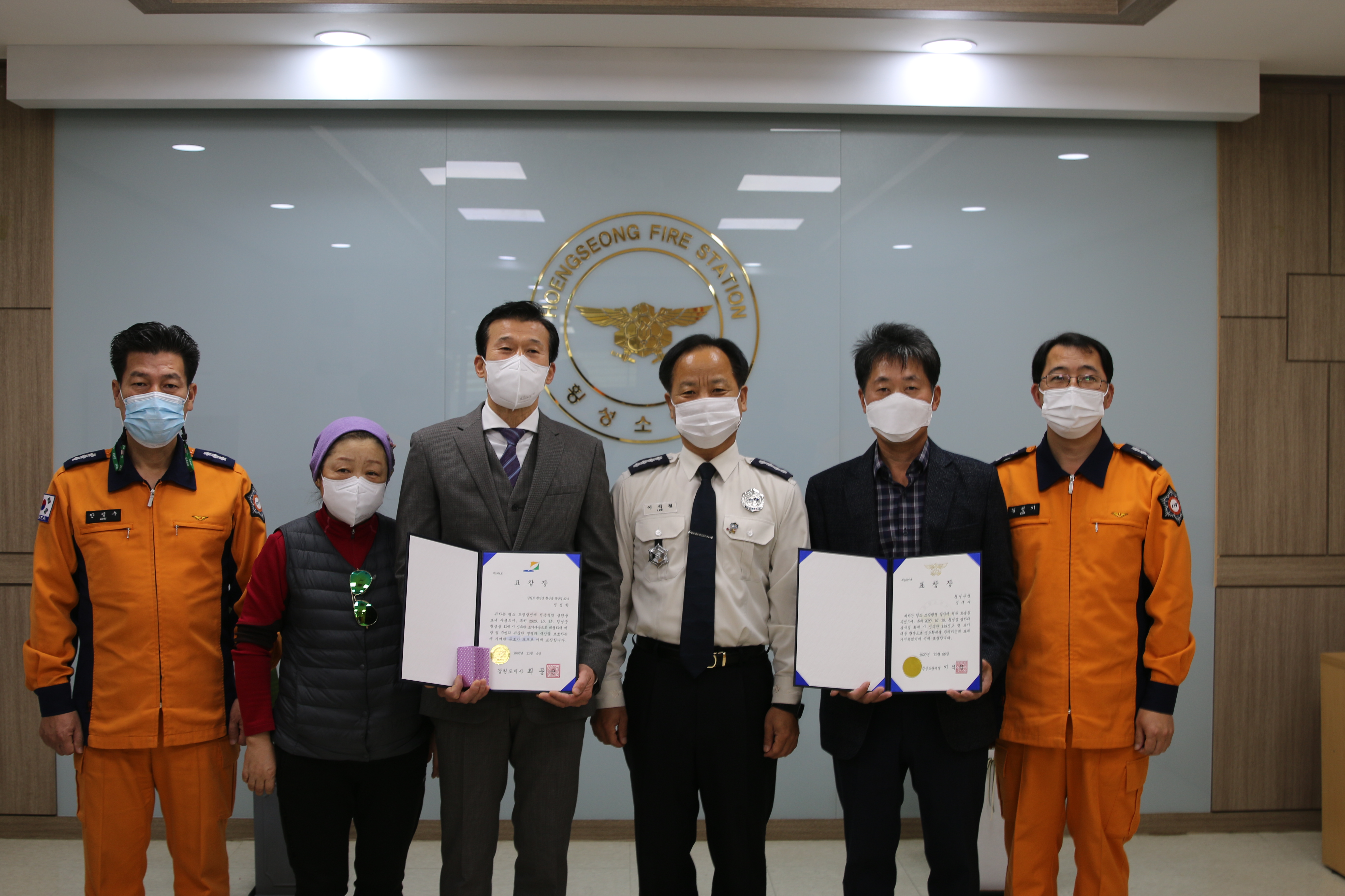 횡성소방서, 화재 초기 진압으로 대형화재 막은 의인 '표창장' 수여