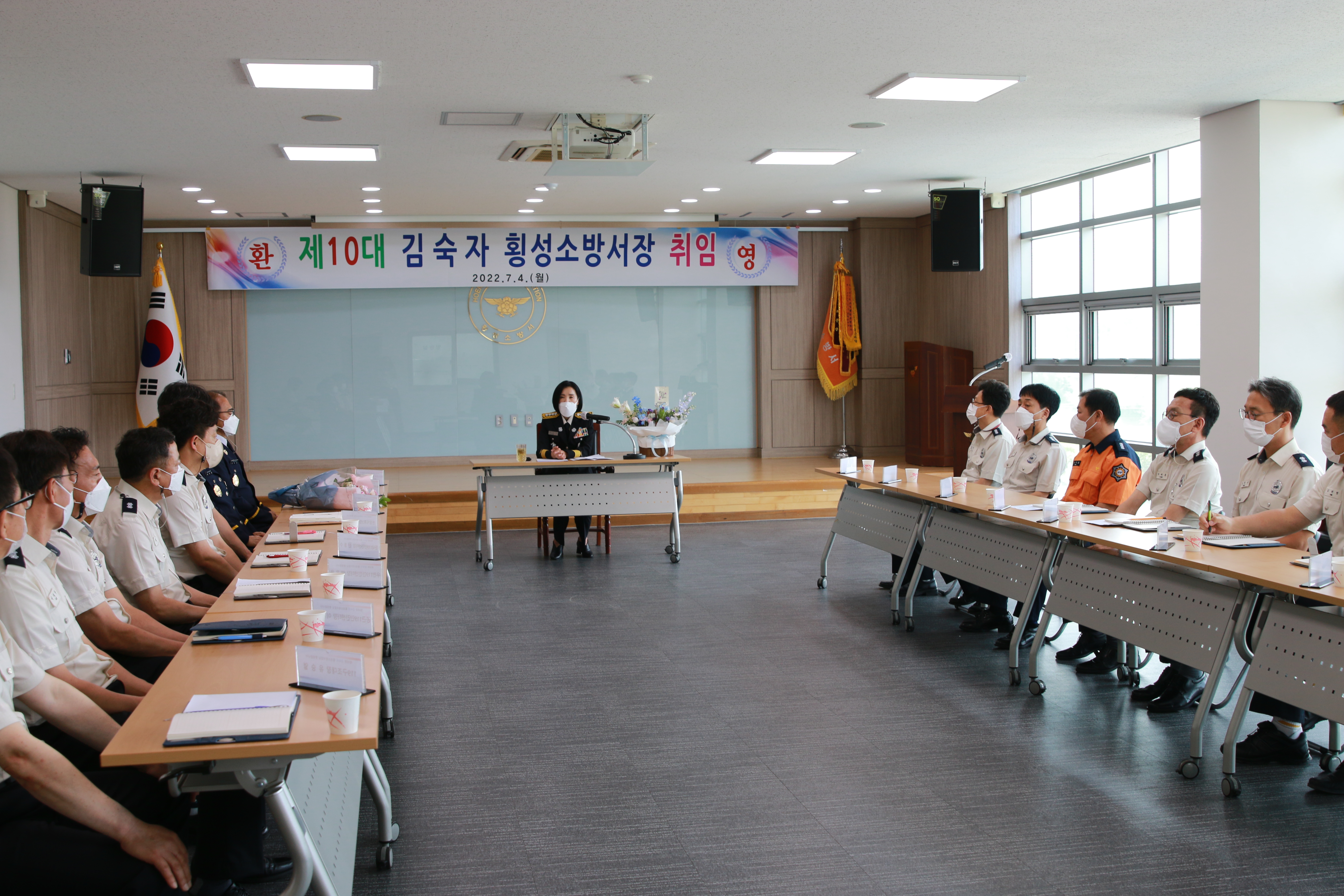 금일 횡성소방서 대회의실에서 제10대 김숙자 횡성소방서장님의 취임식을 약식으로 진행했습니다. 김숙자 서장님의 횡성소방서 취임을 진심으로 환영합니다.