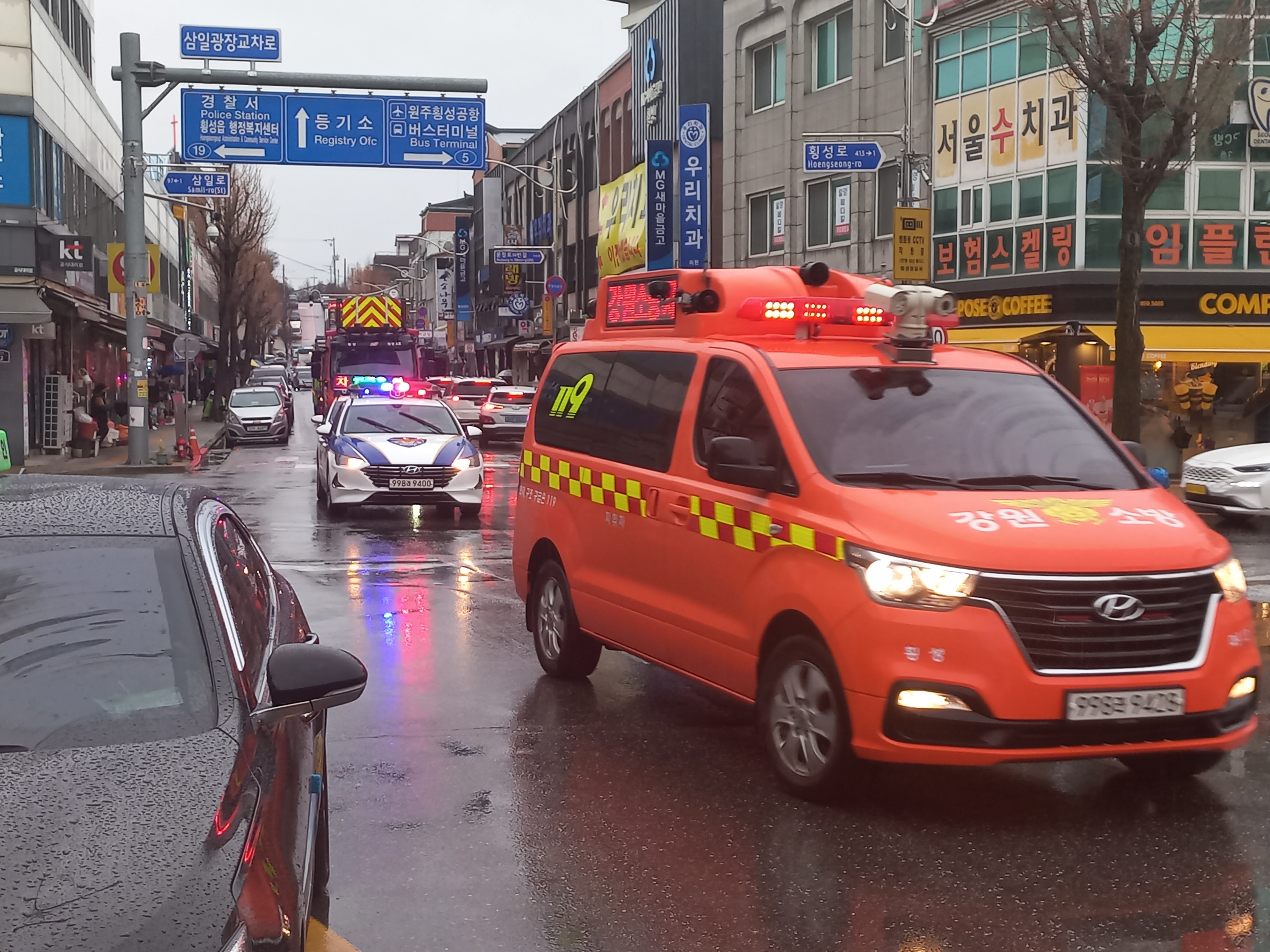 횡성소방서는 오늘 14시 횡성시장등 교통혼잡도로에서 소방출동로 확보훈련을 실시했습니다!