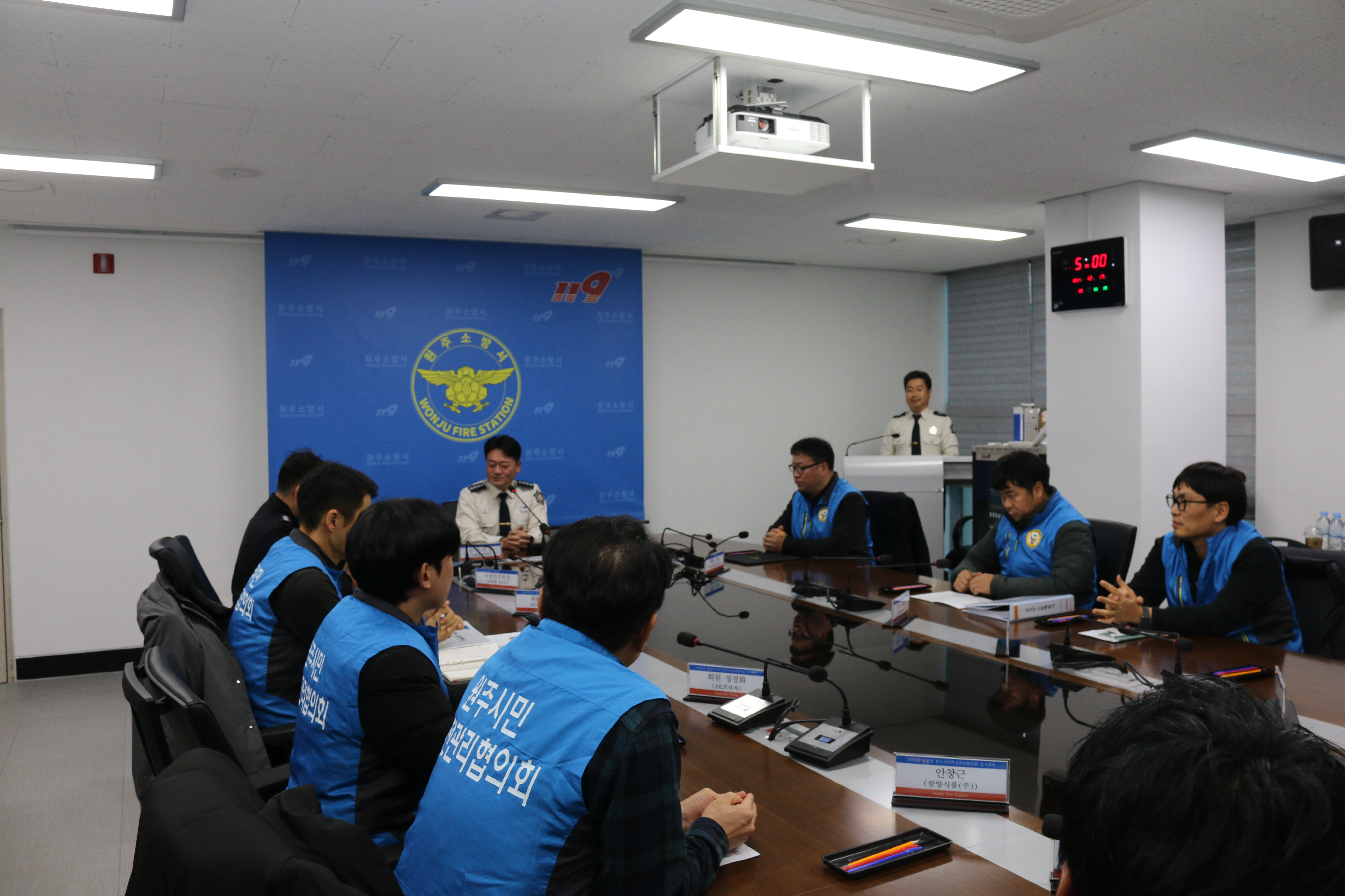 회의에 앞서 차량용 소화기 60점을 원주소방서에 기증하였다.