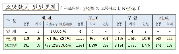 ○ 화재 1건(차량화재 1)