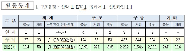 ○ 구조 4건(산악 1, E/V 1, 유케어 1, 신변확인 1)