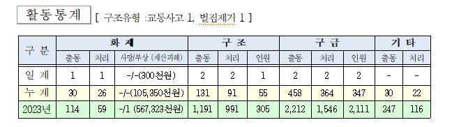 ○ 구조 2건(교통사고 1, 벌집제거 1)