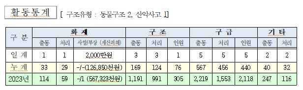 ○ 구조 3건(동물구조 2, 산악사고 1)