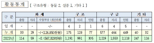 ○ 구조 4건(동물 2, 실종 1, 기타 1)