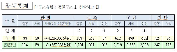 ○ 구조 2건(동물구조 1, 산악사고 1])