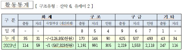 ○ 구조 8건(산악 6, 유케어 2)