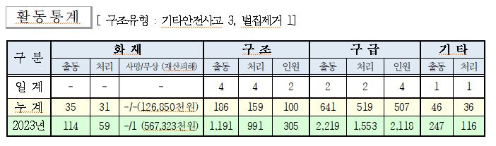 ○ 구조 4건(기타안전사고 3, 벌집제거 1])