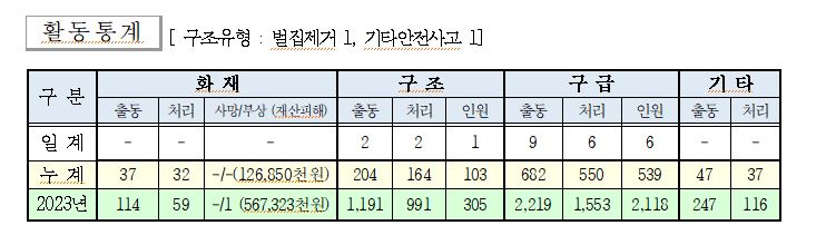 ○ 구조 2건(벌집제거 1, 기타안전사고 1)