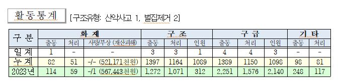 ○ 구조 2건(산악사고 1, 벌집제거 2)