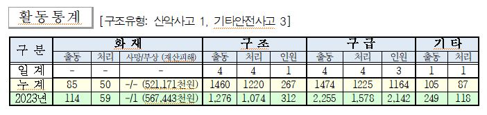 ○ 구조 4건(산악사고 1, 기타안전사고 3)