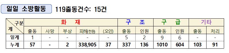 인제소방서 일일소방상황(7. 15.)