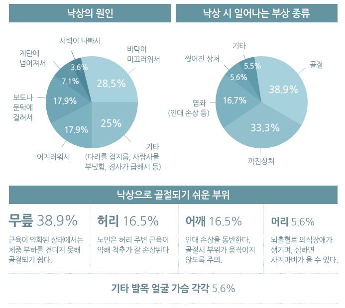 하지만 낙상은 예방할 수 있습니다. 운이 나빠 넘어진 게 아니라 예방하지 않아 넘어진 것으로 봐야 합니다.