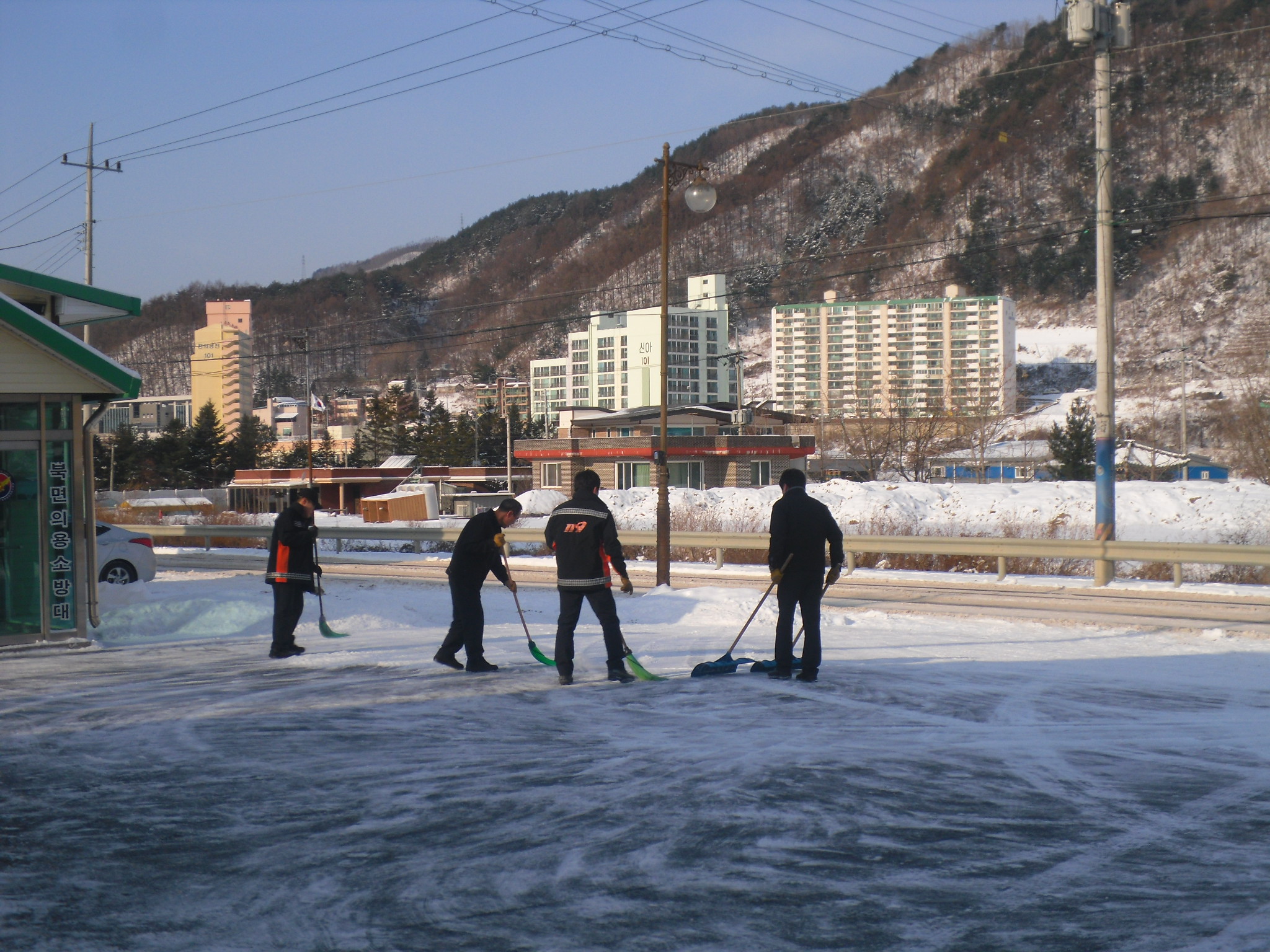 원통119안전센터(센터장 송치면)는 센터 차고 앞 제설작업을 실시했다.