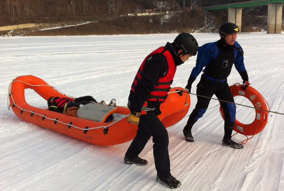 이번 훈련은 빙판용 구조썰매 등 수난구조장비 현지 조작 및 숙달훈련을 중점적으로 실시합니다~!!
