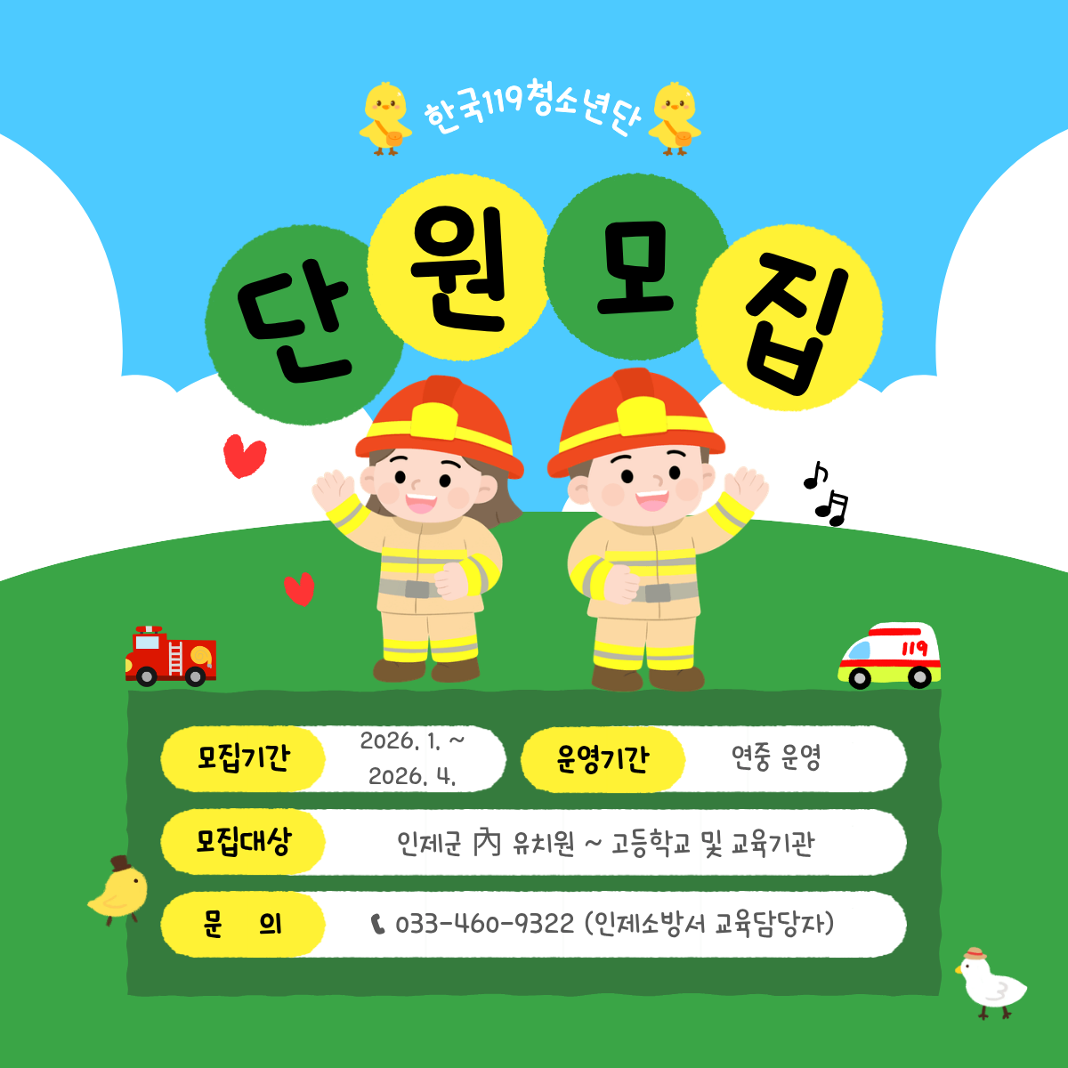 인제군 한국119청소년단 단원 모집