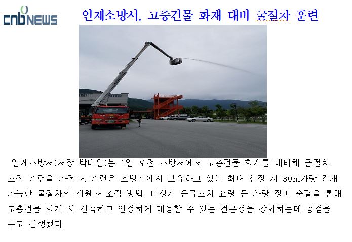 인제소방서, 고층건물 화재 대비 굴절차 훈련(2017.8.3./CNB뉴스)