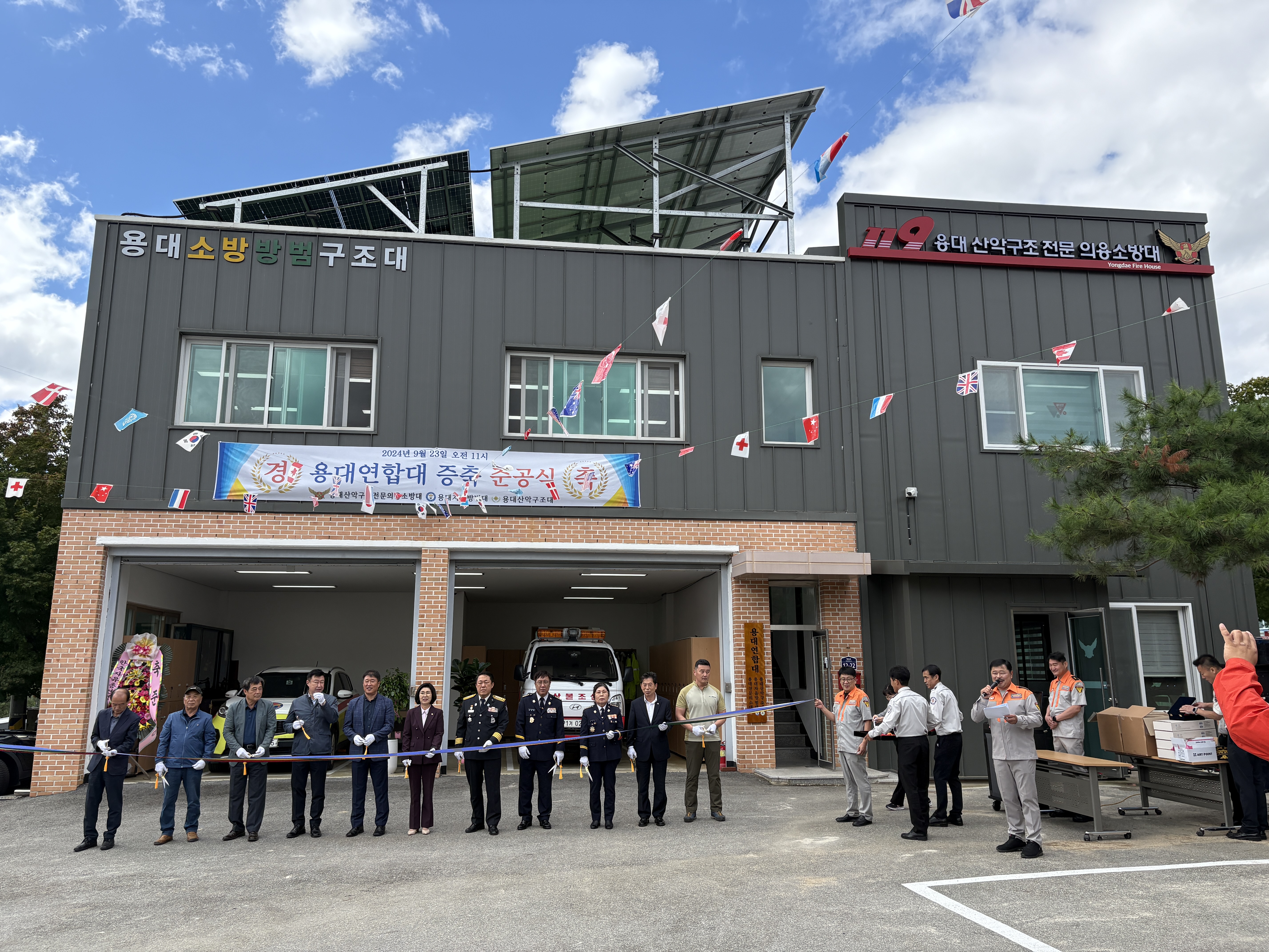 준공식 행사는 ▲내빈소개 ▲청사 준공 경과보고 ▲유공자 감사패 수여 ▲기념촬영 및 테이프 절단식 순으로 진행되었으며, 준공식 행사 후 오찬 시간을 가지며 의용소방대의 애로사항도 청취하였다.