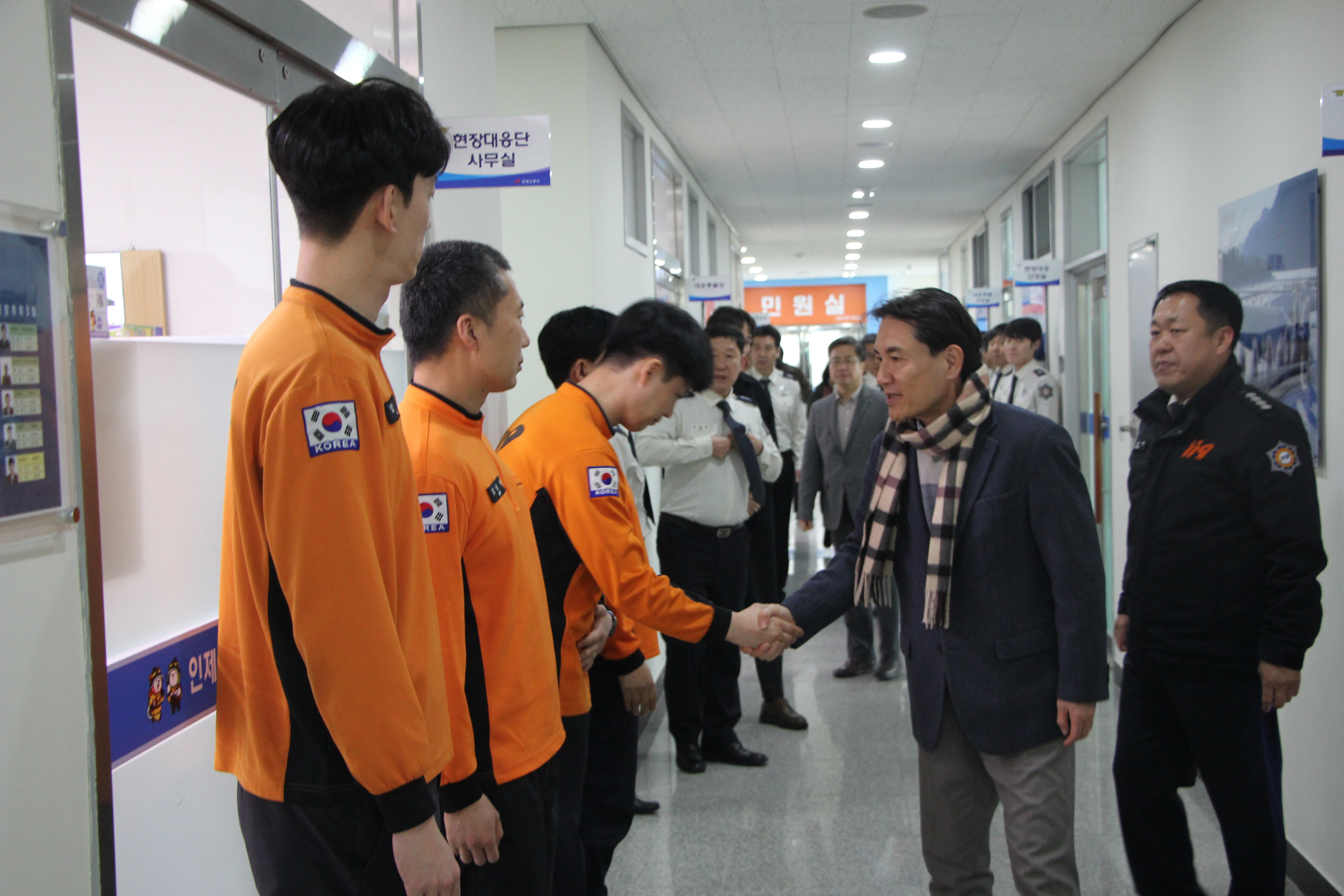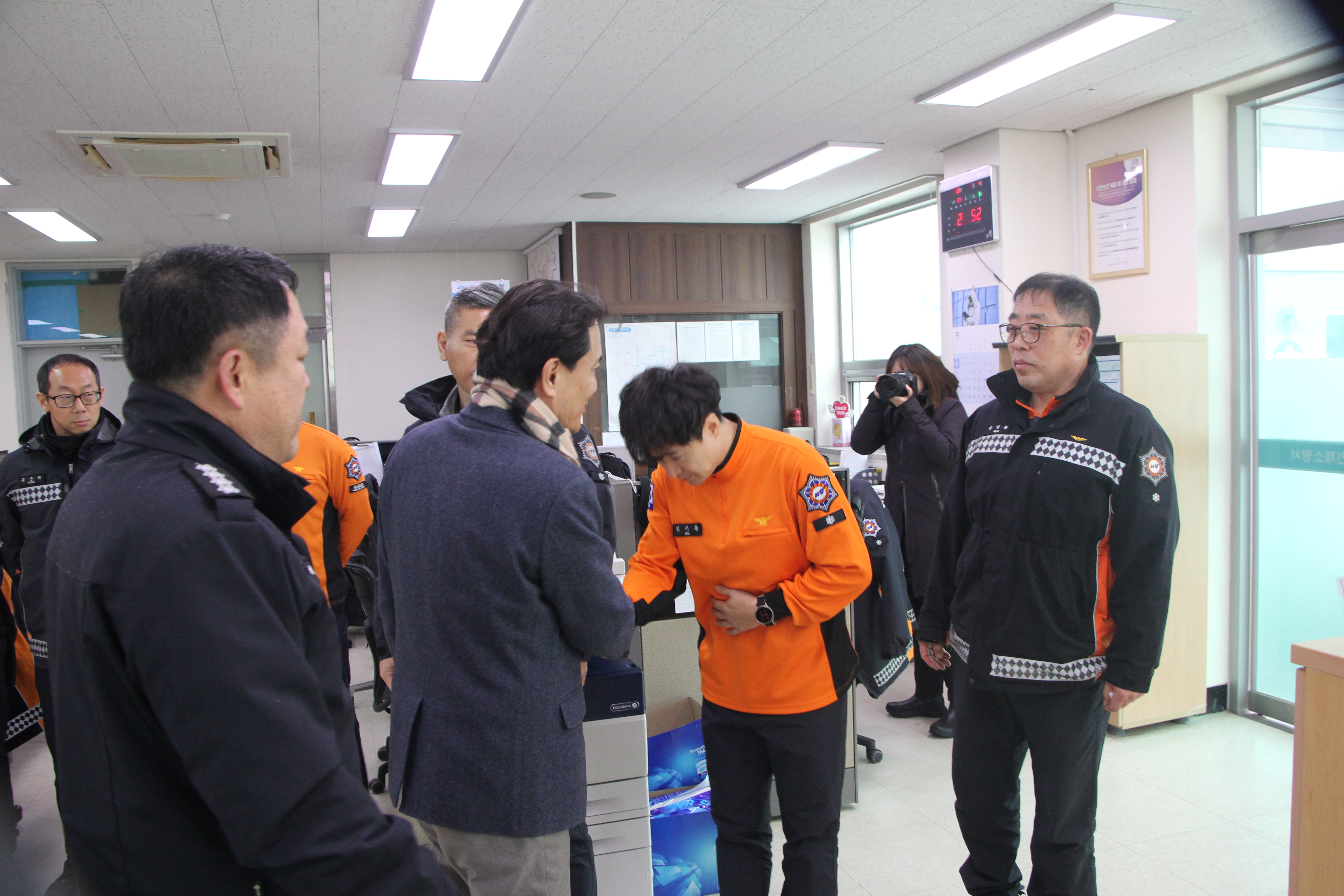 김진태 도지사는 “겨울철 건조기 산불대응 핵심 소방서 역할 당부 및 산악지형 재난대응에 따른 직원들의 노고에 감사드린다”며“강원특별자치도 안전에 앞장서달라”고 전하였으며 격려 물품(간식) 전달을 마지막으로 다음 일정을 위해 이동하였다.