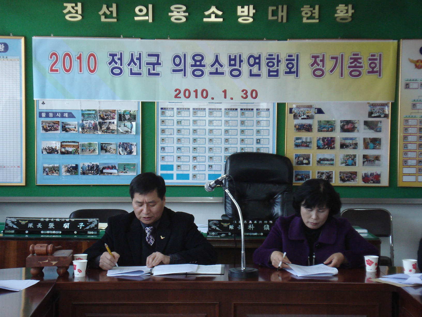 정선소방서장(우원기) 정선연합대장(박진호) 정선여성연합대장(장순자) 외 각 대 대장님들께서는 1월30일 정선의소대 사무실에서 2009年 정기총회를 실시하였읍니다