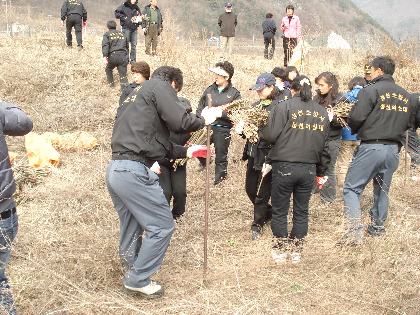 정선의소대 대장(박진호) 정선여성대 대장(장순자) 외 남.여 대원들은 3얼22일 북실리 활터앞 강변에서 푸른정선21실천협의회 에서 주관하는 갯버들 5000여 그루를 정성껏 심었읍니다..