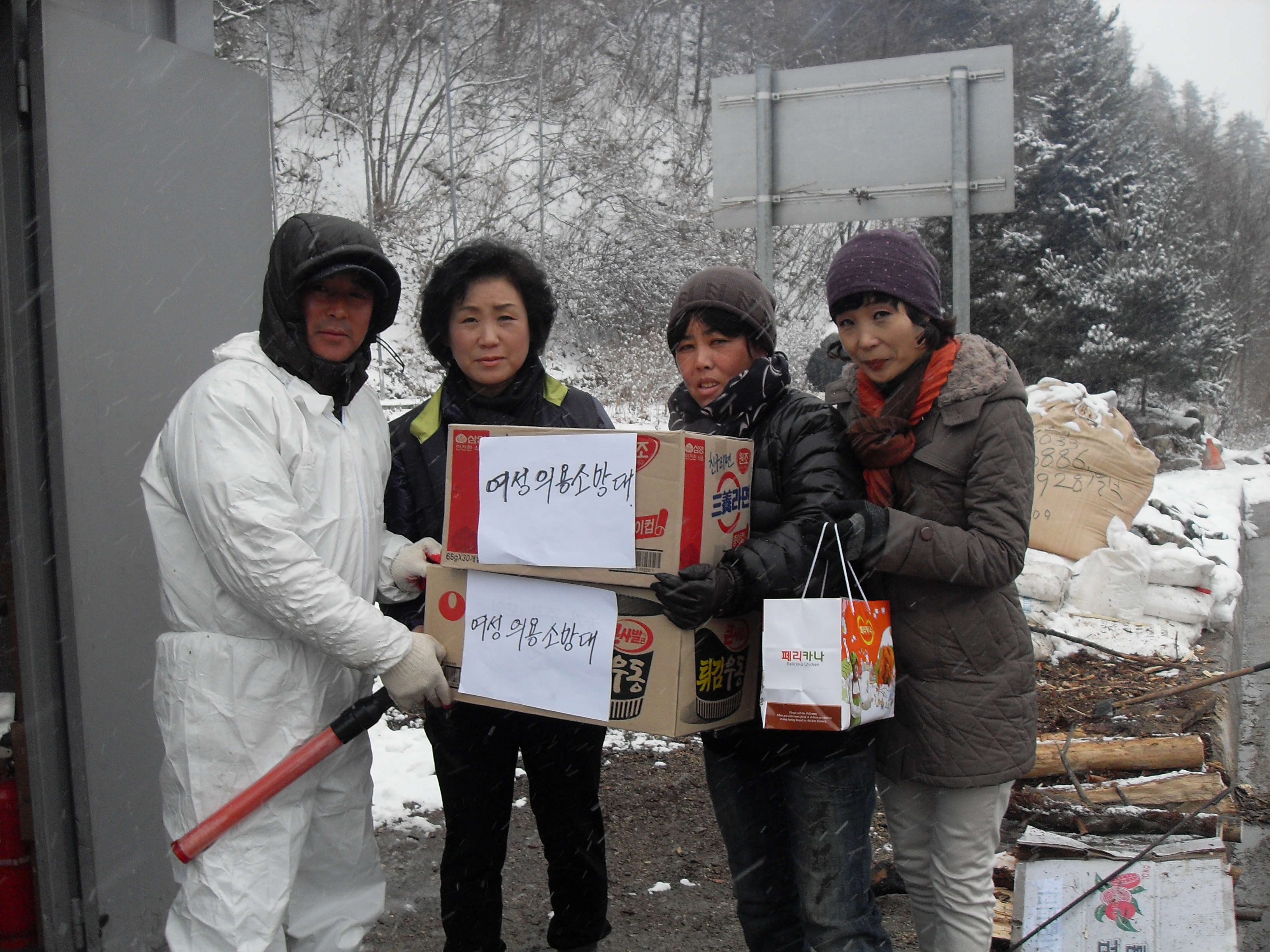 우리 임계여성의용소방대에서 구제역초소에서 추운날씨에 고생하시는 분들께 라면, 간식등을 제공하였습니다.