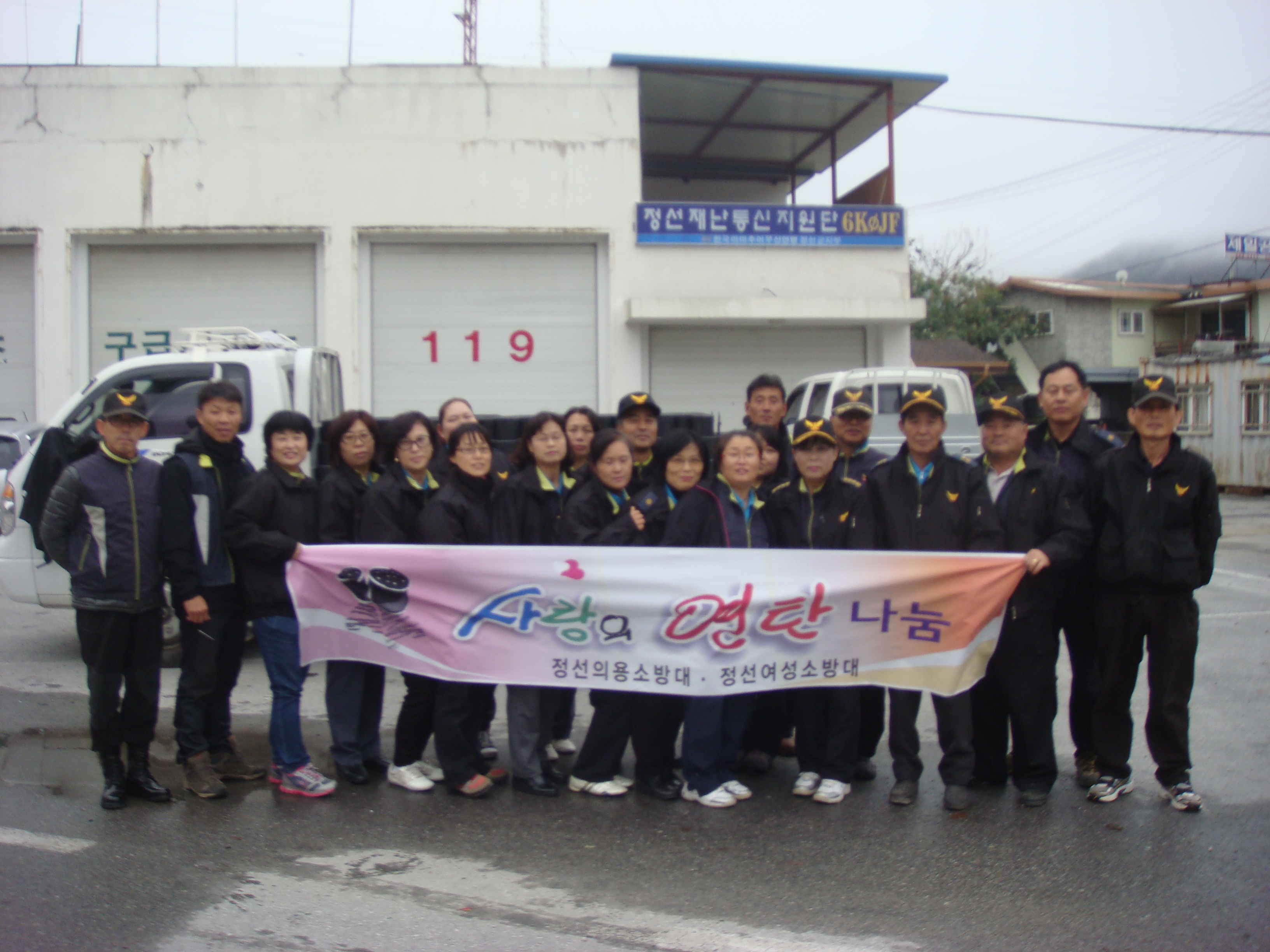 정선의용소방대(대장:박진호) 정선여성의용소방대(대장:장순자) 남, 여 의용소방대원은 10월23일 휴일임에도 불구하고 가수리1가구 귤암1가구 광하2가구등 사랑의연탄 1200장을 배달(오전8시30분~12:30분) 대원님 수고 하셨습니다.
