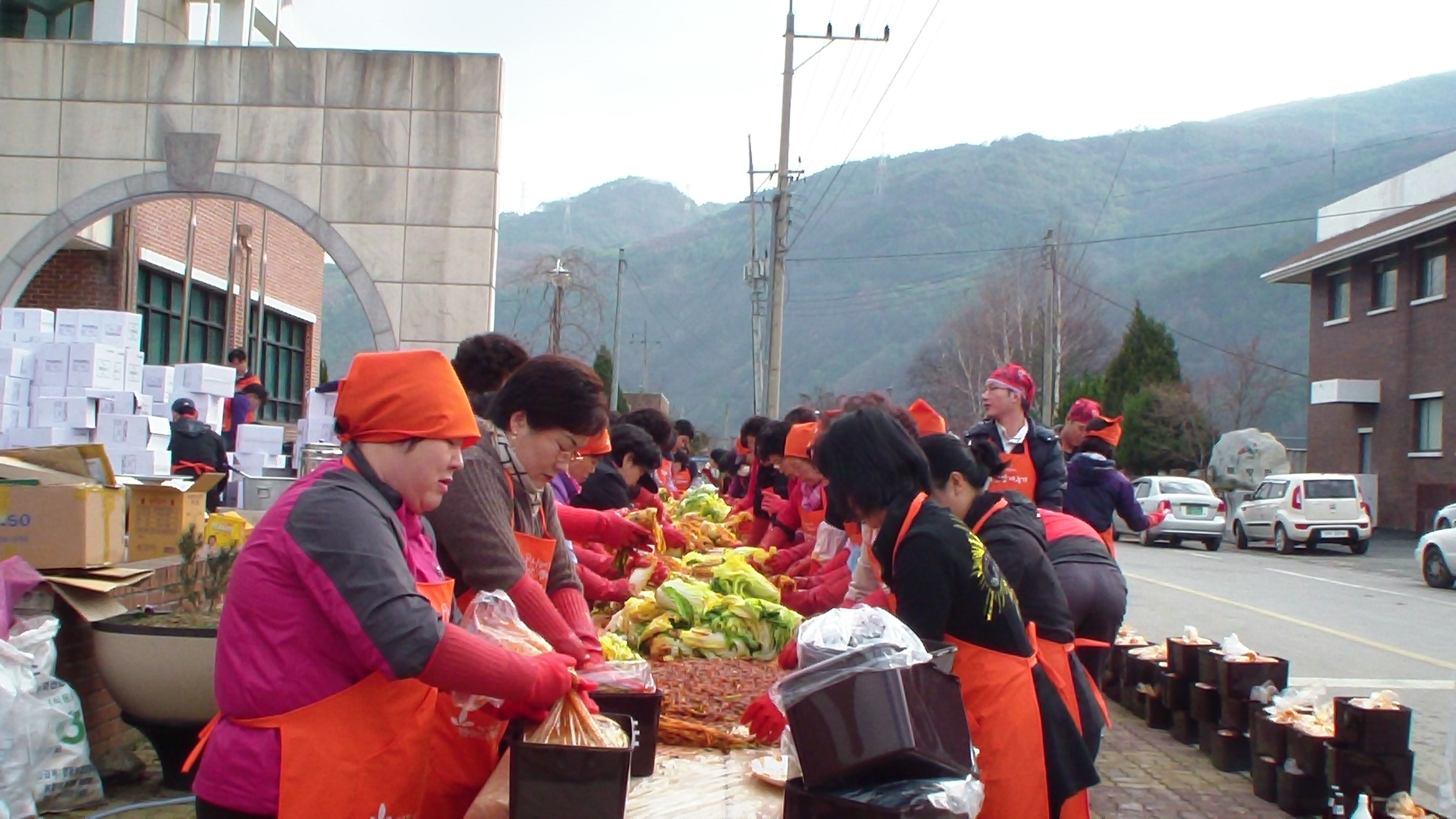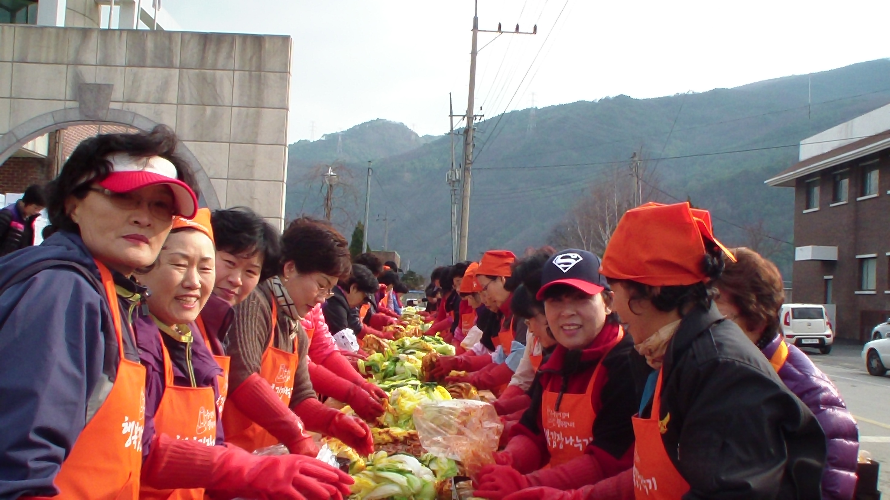 11월 16일 북평면 복지회관앞 마당에서 열린 행복김장나누기 행사에 정선군 여성협의회 김종순회장님을 비롯하여 장순자연합대장님, 북평여성대 최해숙 대장님, 여량여성대 김연순대장님, 화암여성대 정미녀대장님, 그리고 소방대원 여러분, 각 봉사단체에서 참여하셨습니다.