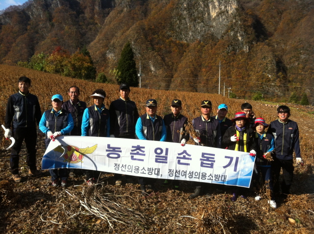 정선여성의용소방대에서는 10월 28일 정선읍 귤암리에서 농촌일손돕기와 신월리 독거노인 가정에 연탄배달 봉사를 남`여의용소방대원들이 실시하였다.