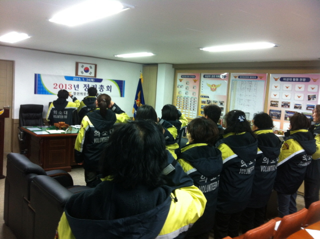 정선여성의용소방대(대장 장순자)에서는 1월 24일 사무실에서 2012년 사업 및 결산, 2013년 사업계획 등 정기총회을 개최 하였고, 뒤풀이에는 정선소방서장님과 직원, 전직대장님, 정선남성의용소방대장님을 비롯한 간부들과 화합의 만찬이 있었다.