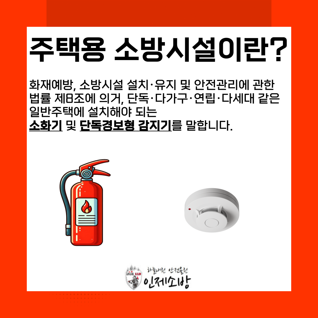 주택용 소방시설은 소방 법령에 따라 단독주택과 공동주택에 의무적으로 설치해야 되는 ‘소화기’와 ‘단독경보형 감지기’를 말한다.