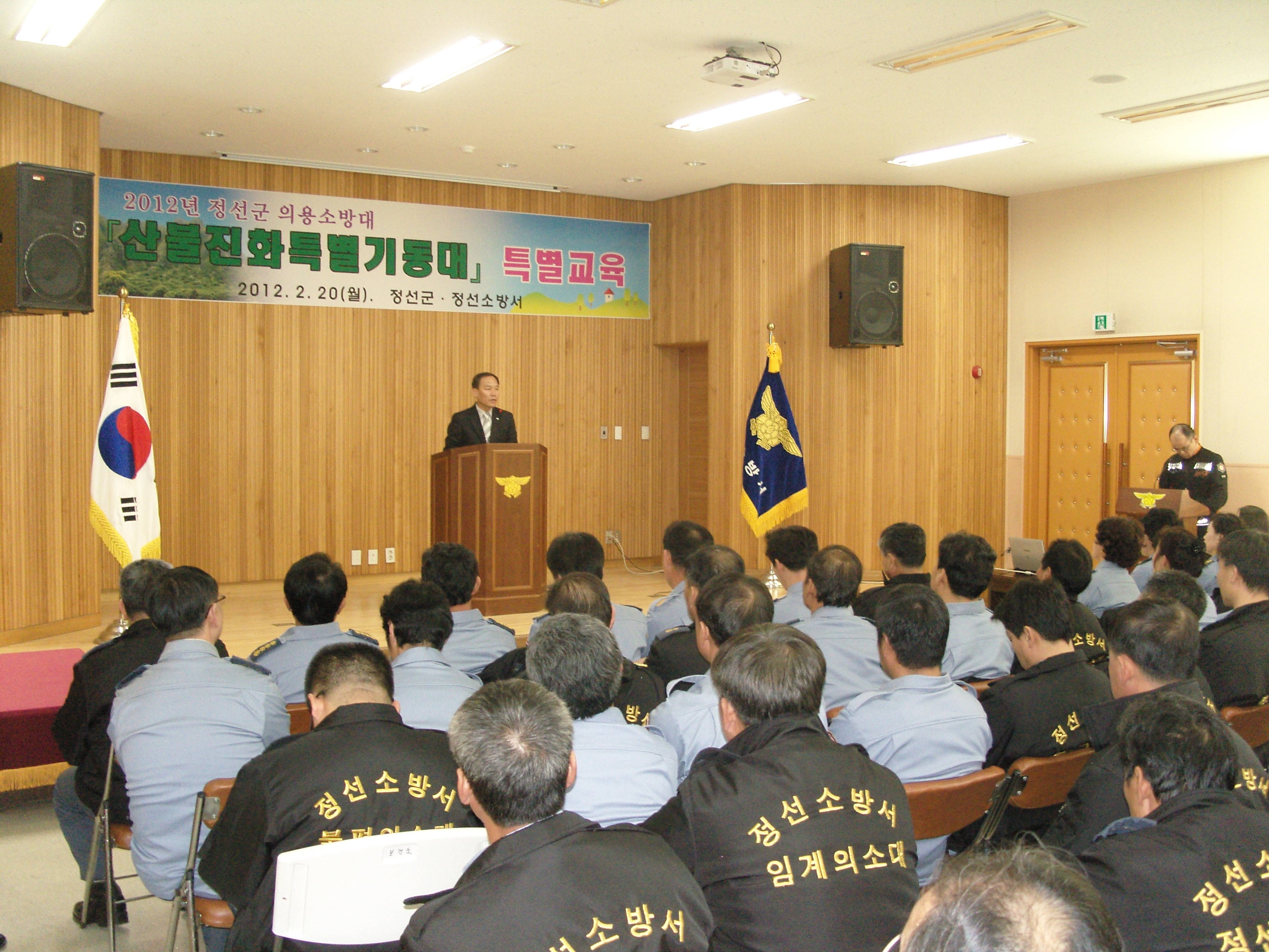 정선소방서(서장 박창진)는 2월 20일 정선소방서 대회의실에서 정선군수와 산림정책과장을 강사로 초빙하여 정선군 의용소방대 산불진화특별기동대원 130명을 대상으로 산불예방 및 진화업무에 대한 특별교육을 실시하였다.