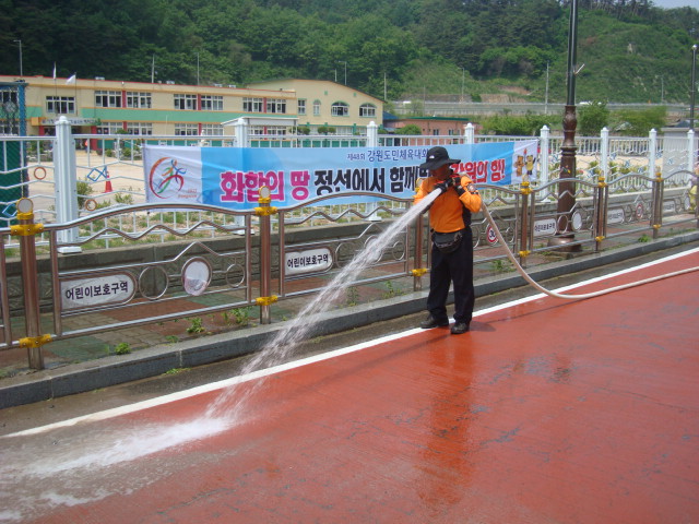 정선소방서(서장 주항중) 신동119안전센터(센터장 전상봉)에서는 강원도민체전 맞이 국토대청결운동으로 도로물청소 및 쓰레기 줍기를 실시하였습니다.