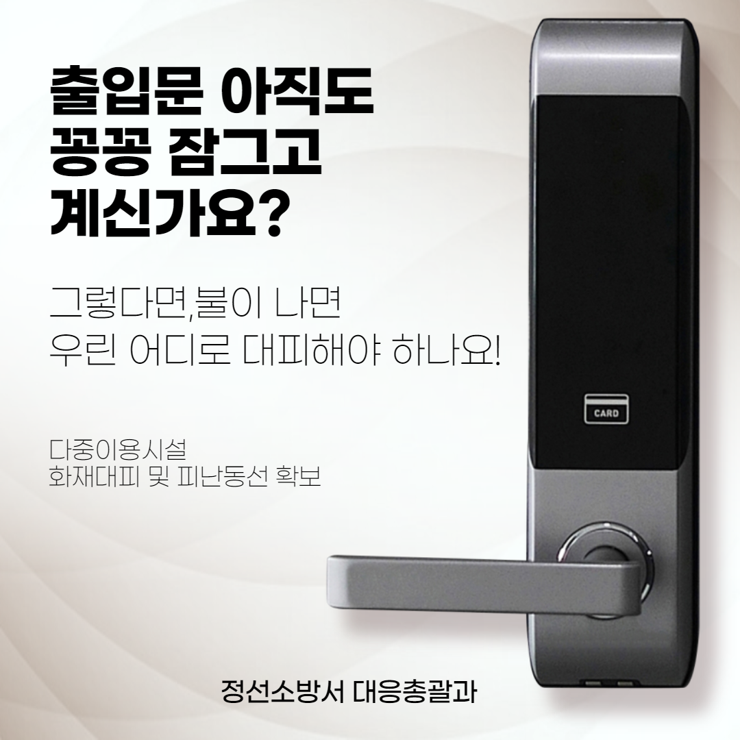 ➤소방서 관계자는 “출입구는 재난생활 발생 시 유일한 비상구가 될 수 있기에 인명피해를 막기위해 열어달라”고 전했다.