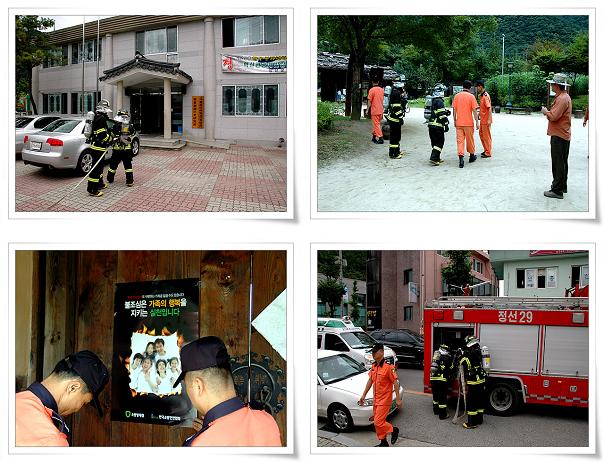 정선소방서(서장 우원기)는 2009.08.10. 14:00 정선아라리촌과 정선문화원을 대상으로 화재진압훈련을 실시하였습니다. 이날 관계자 안전교육 실시 , 소방통로확보 및 소방방재청 제작 화재예방포스터를 배부하였습니다.