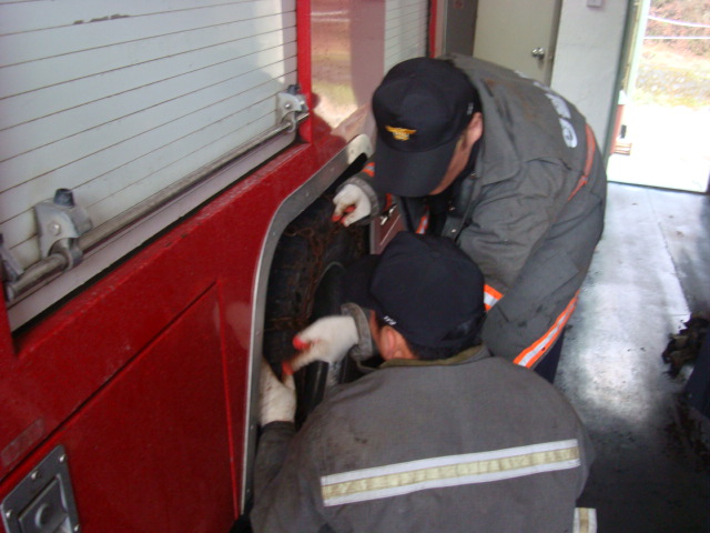 정선소방서(서장 박창진) 신동센터 주간근무자는 폭설대비 펌프차량 체인장착및 폭설시에도 신속한 출동을 할 수 있도록 출동근무태세 철저~~!!