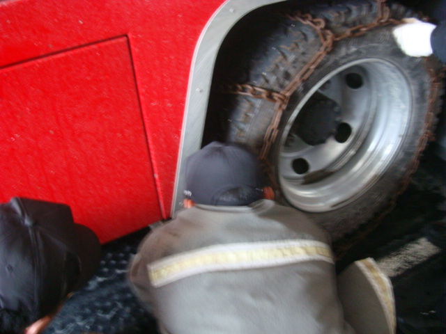폭설에 따른 펌프차량 체인장착 실시~~!!