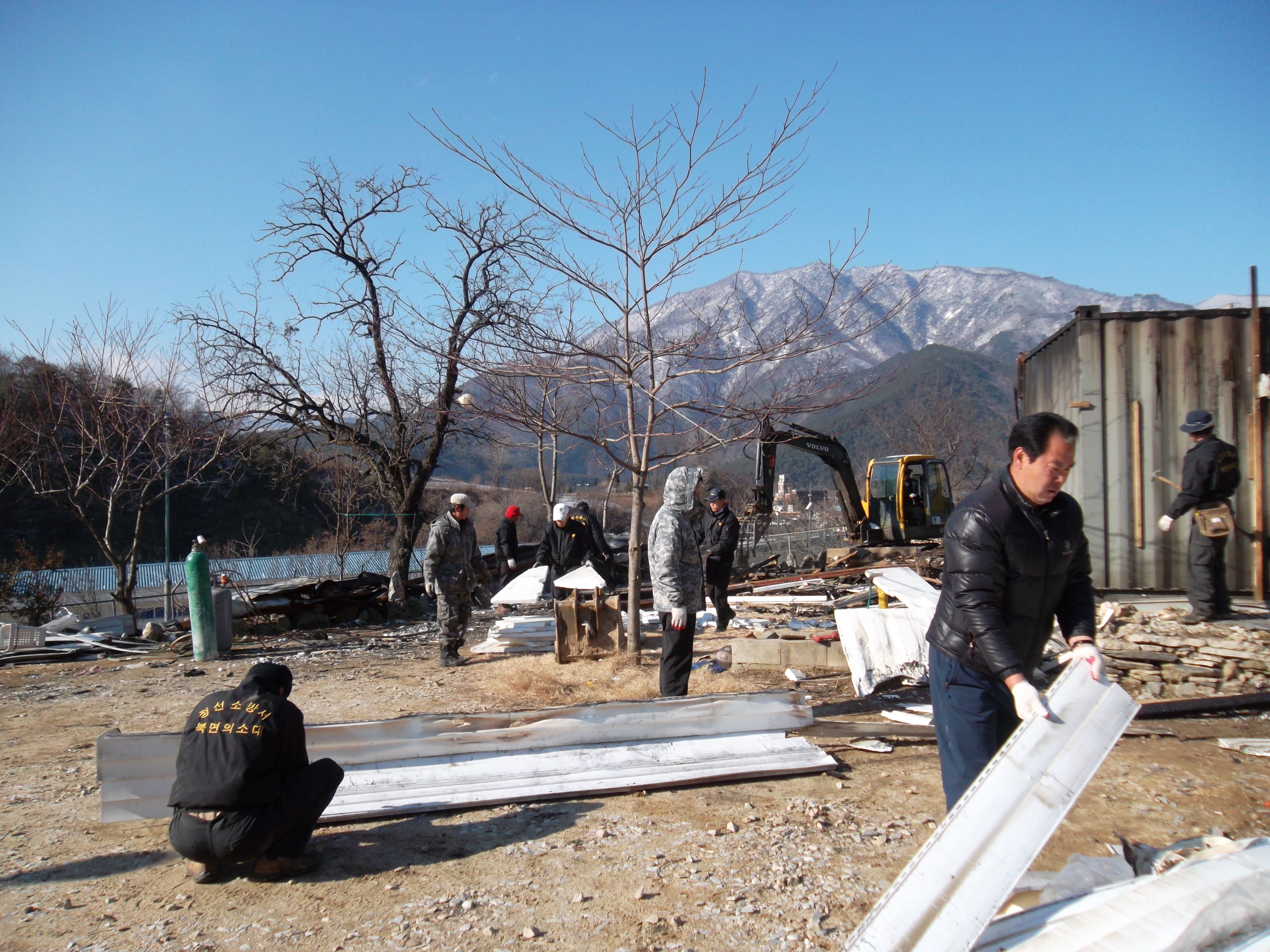 임계119안전센터(센터장 김종회) 여량 남ㆍ여 의용소방대에서 2011.12.11(일) 시름에 잠김 이웃을 위해 화재피해주택 철거작업 및 복구지원 봉사활동을 실시하였습니다. 다시는 이런일이 일어나지 않았으면 하는 바램입니다..