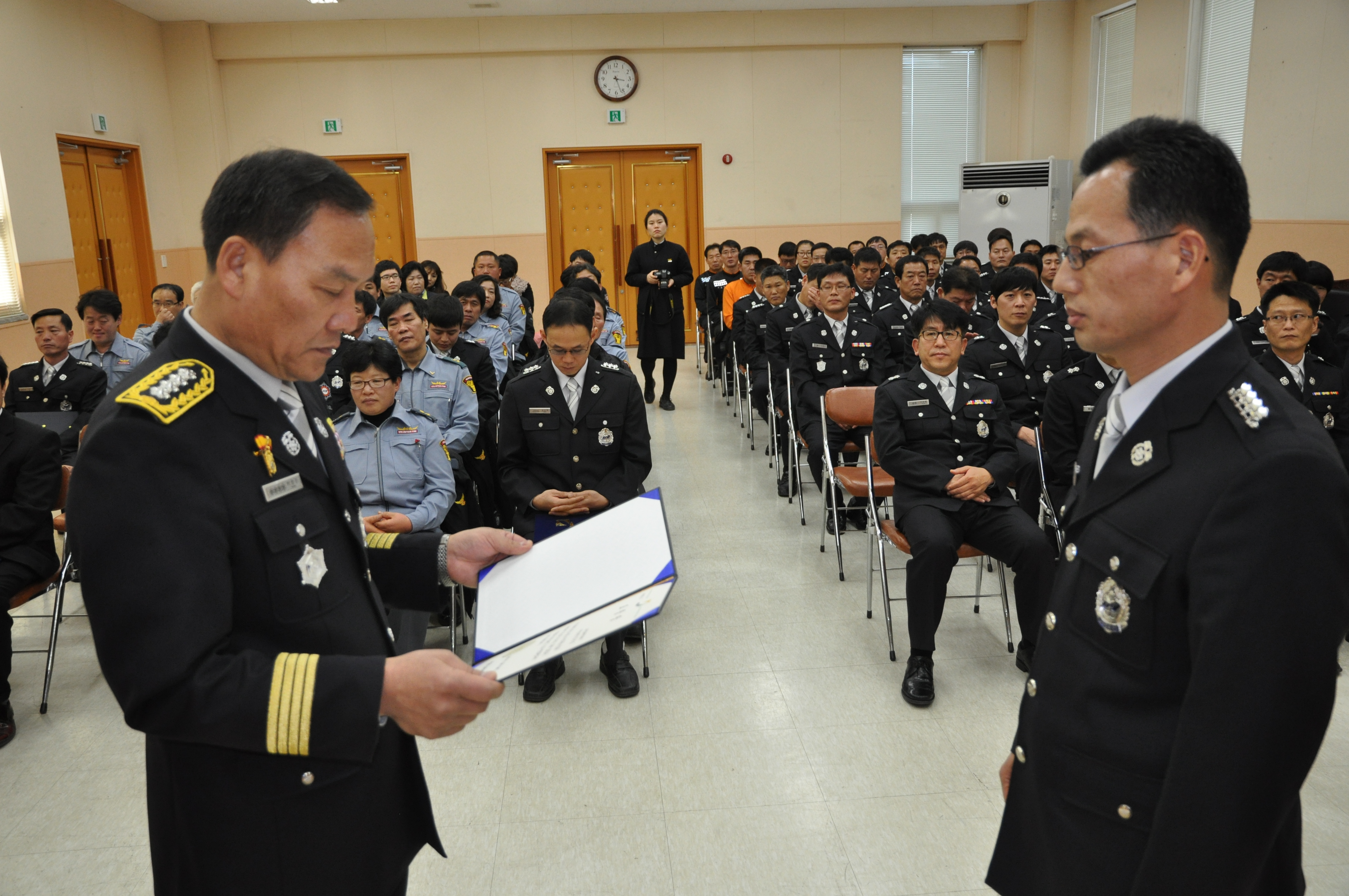 정선소방서(서장 박창진)는 2일 오전 10시 소방서 대회의실에서 2012년 상반기 “아름다운 정선소방인”에 선정된 고한119안전센터 김용길 소방장에 대해 표창하였습니다.