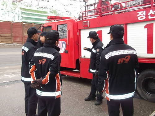 PTO 작동법을 반복훈련하였고, 겨울철 화재진화시 문제점에 대하여 상호 의견을 나누었습니